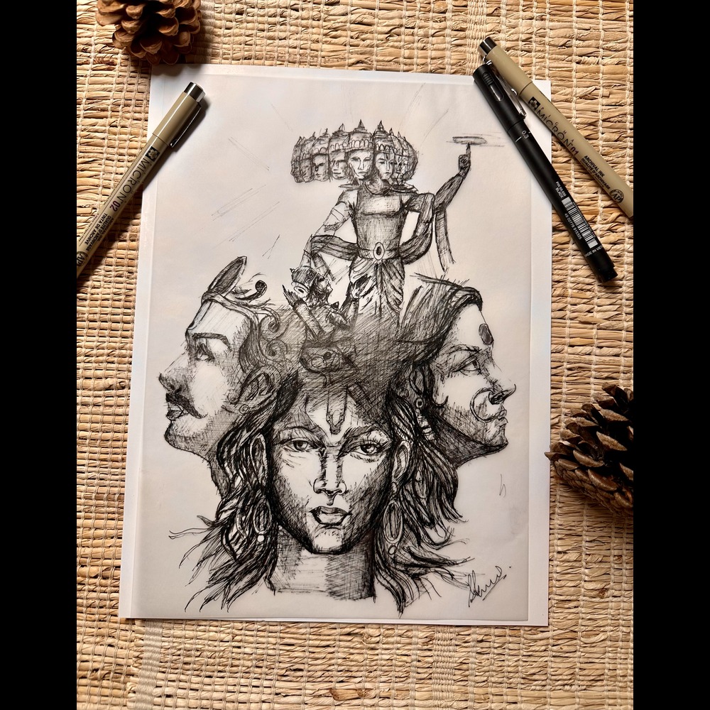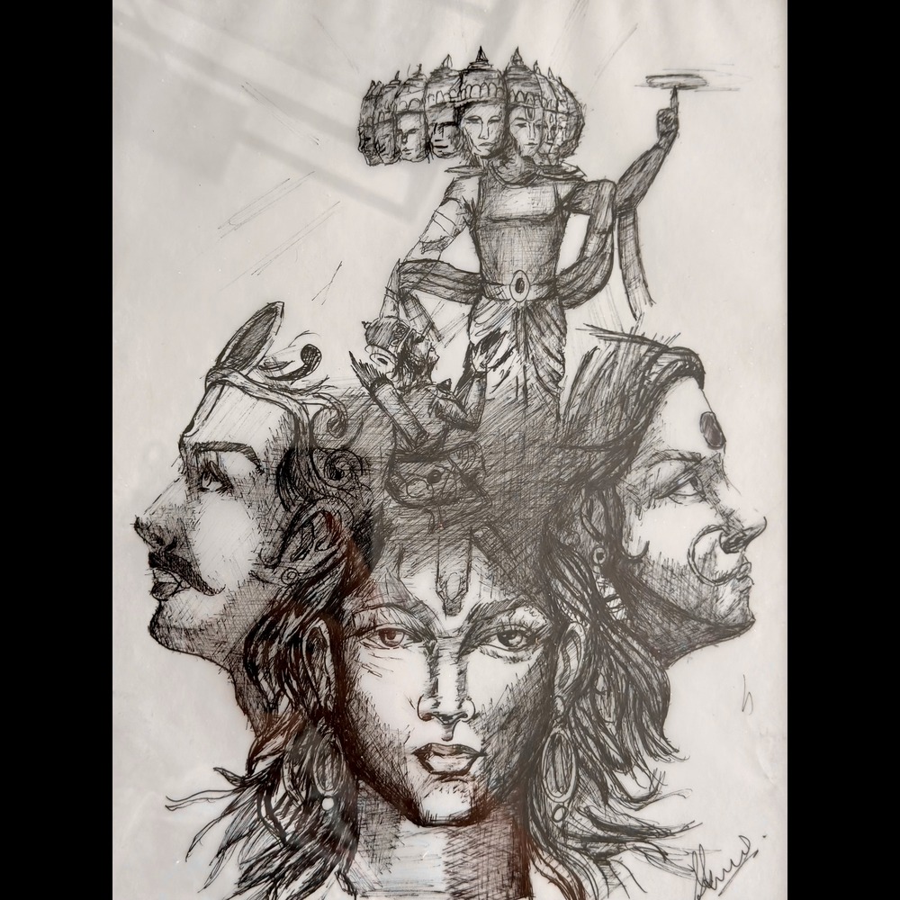 Experience the epic tale of Mahabharata brought to life in our A4-sized pen sketch, unfolding the emotion of the Bhagwat Gita itself.